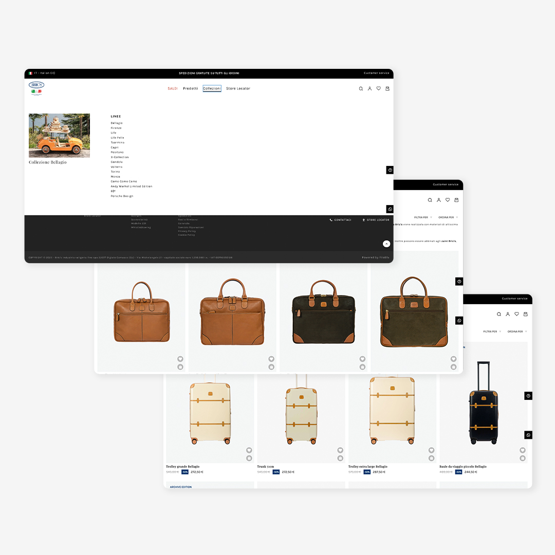 La collaborazione con Bric's è iniziata nel 2021, quando il brand ci ha scelto come partner strategico per accelerare la crescita del proprio business digitale. Al centro del progetto, la riprogettazione dell’e-commerce, concepita per offrire un’esperienza d’acquisto all’altezza della boutique, esaltando l’identità e il patrimonio del brand.
